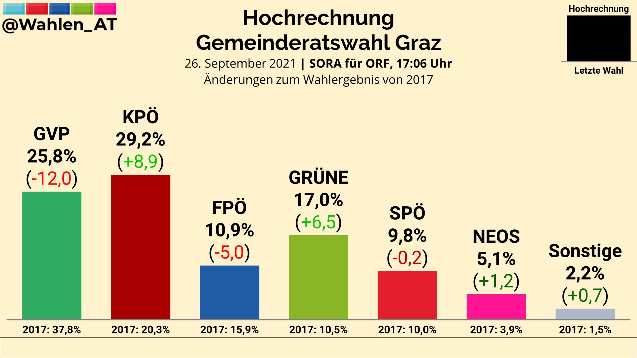 Graz wahl hochrechnung. Laut Hochrechnung überholt die KPÖ die ÖVP und übernimmt klar Platz. Wissenswertes rund um die Grazer Gemeinderatswahl am 26. Laut der ersten SORAORF-Hochrechnung nahm die KPÖ der ÖVP - mit großem Vorsprung - Platz 1 ab.